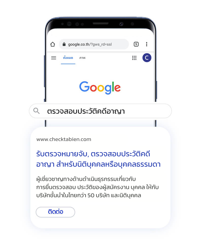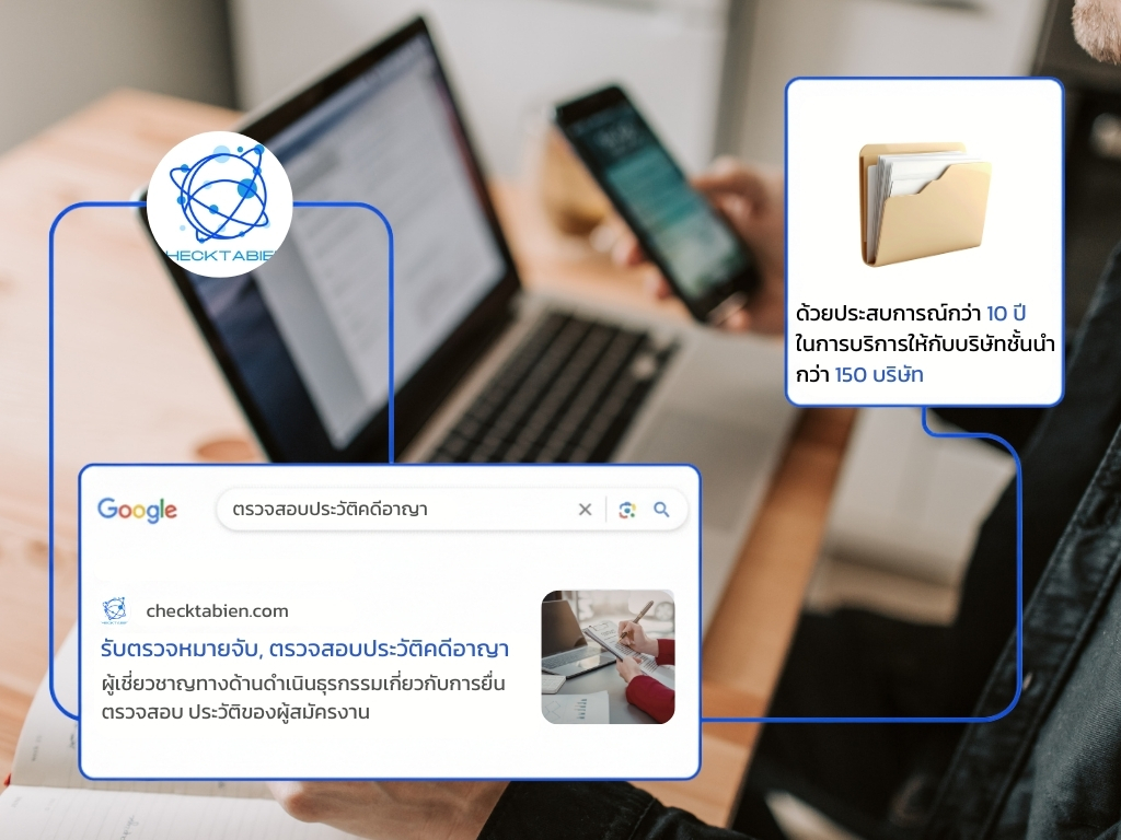 ผู้เชี่ยวชาญทางด้านดำเนินธุรกรรมเกี่ยวกับการยื่นตรวจสอบ ประวัติของผู้สมัครงาน บุคคล ให้กับบริษัทชั้นนำในไทยกว่า 50 บริษัท